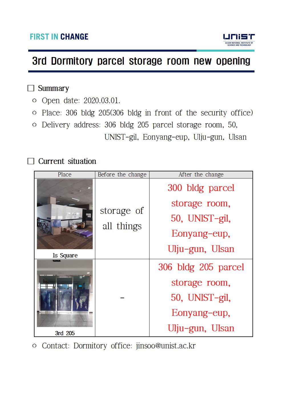 | 공지 | 3rd Dormitory parcel storage room new opening | 2020-02-28 | 778 |