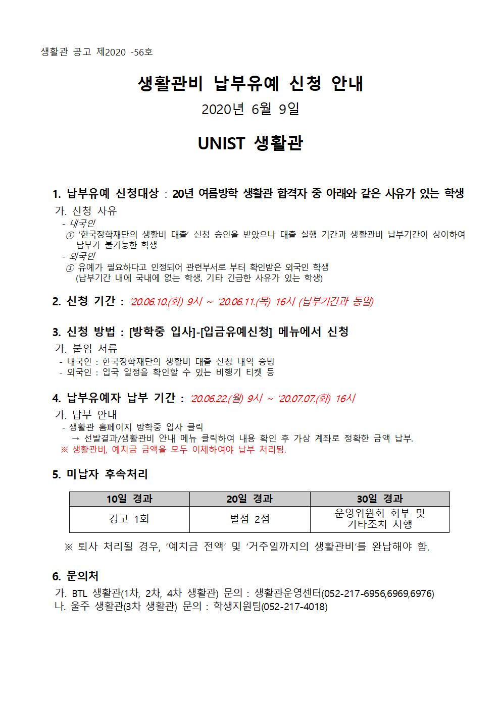 | 15 | (No.2020-56) 생활관비 납부유예 신청 안내(Notice of appli.. | 2020-06-09 | 568 |