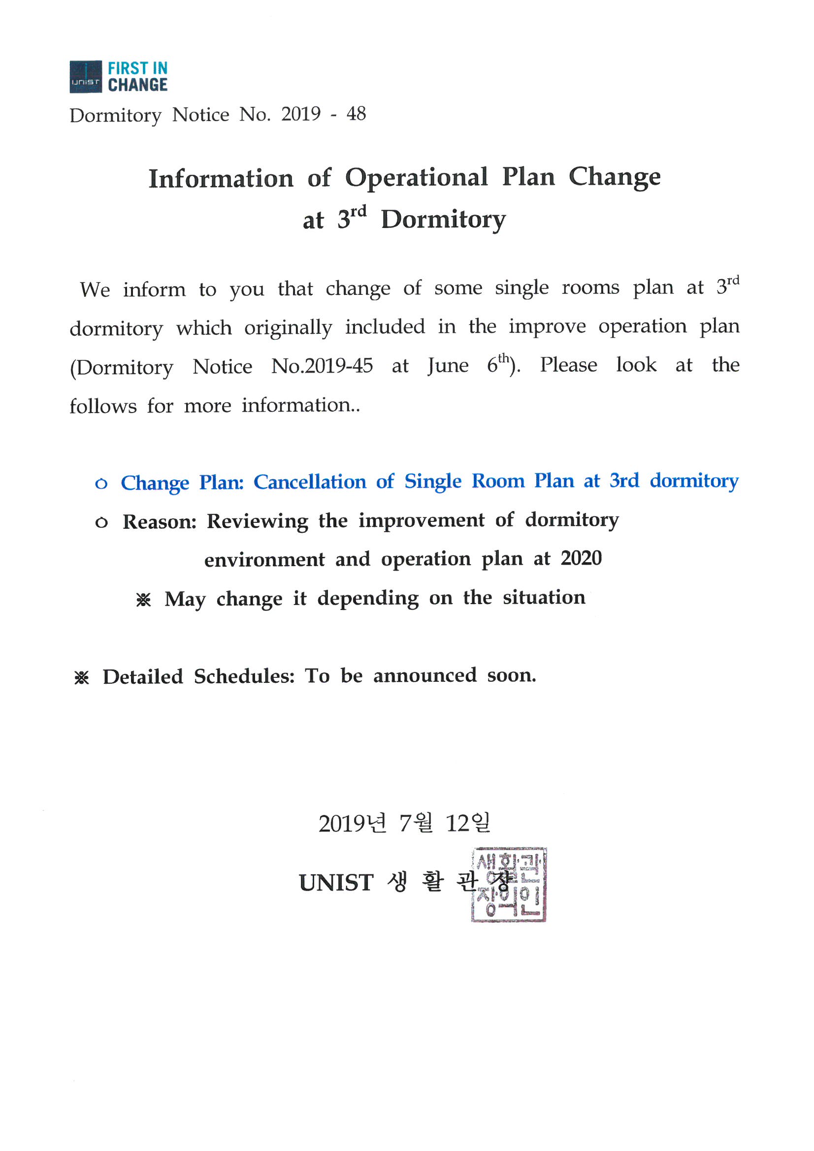 | 3 | Information of Operational Plan Change at 3rd Dormitory | 2019-07-12 | 614 |